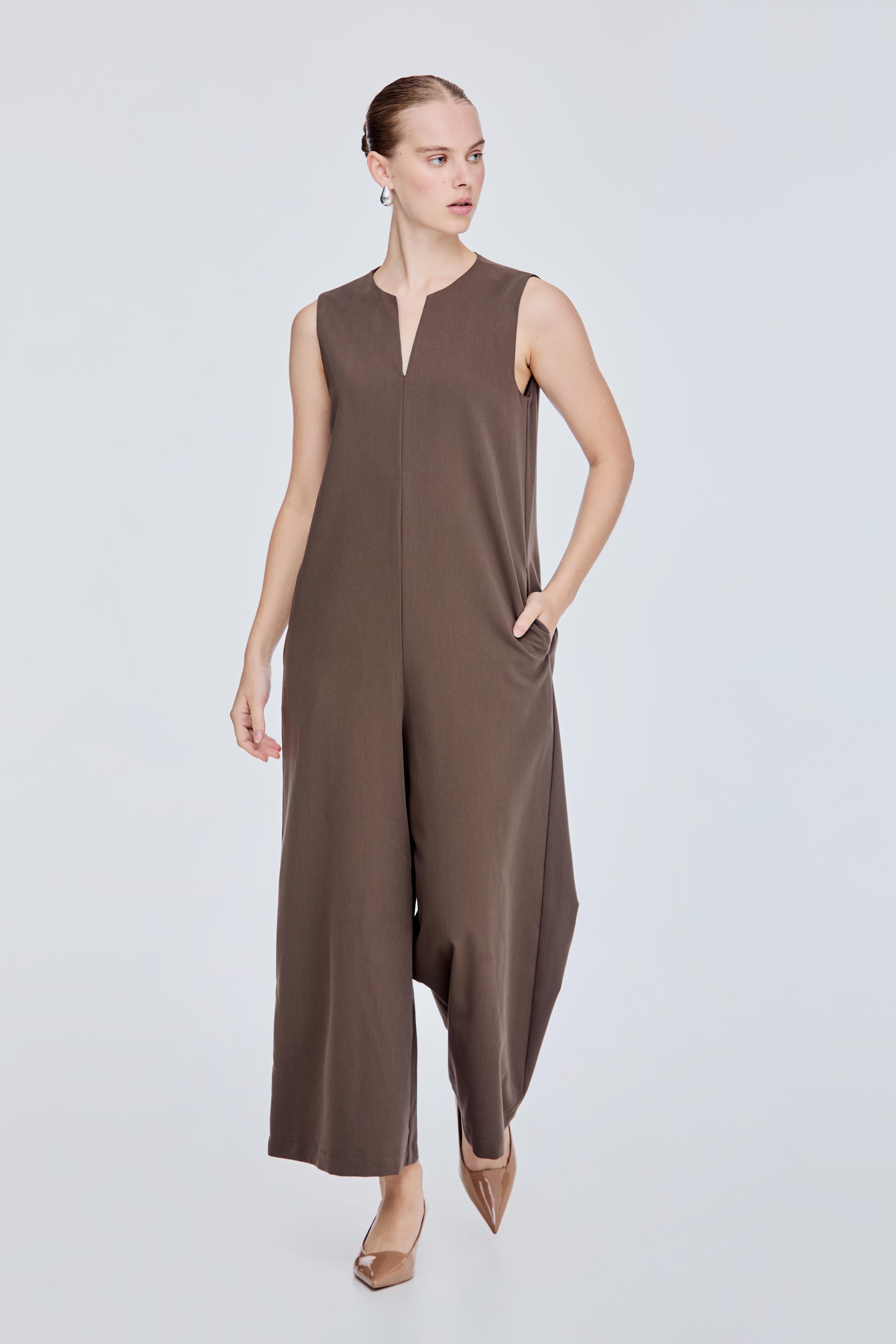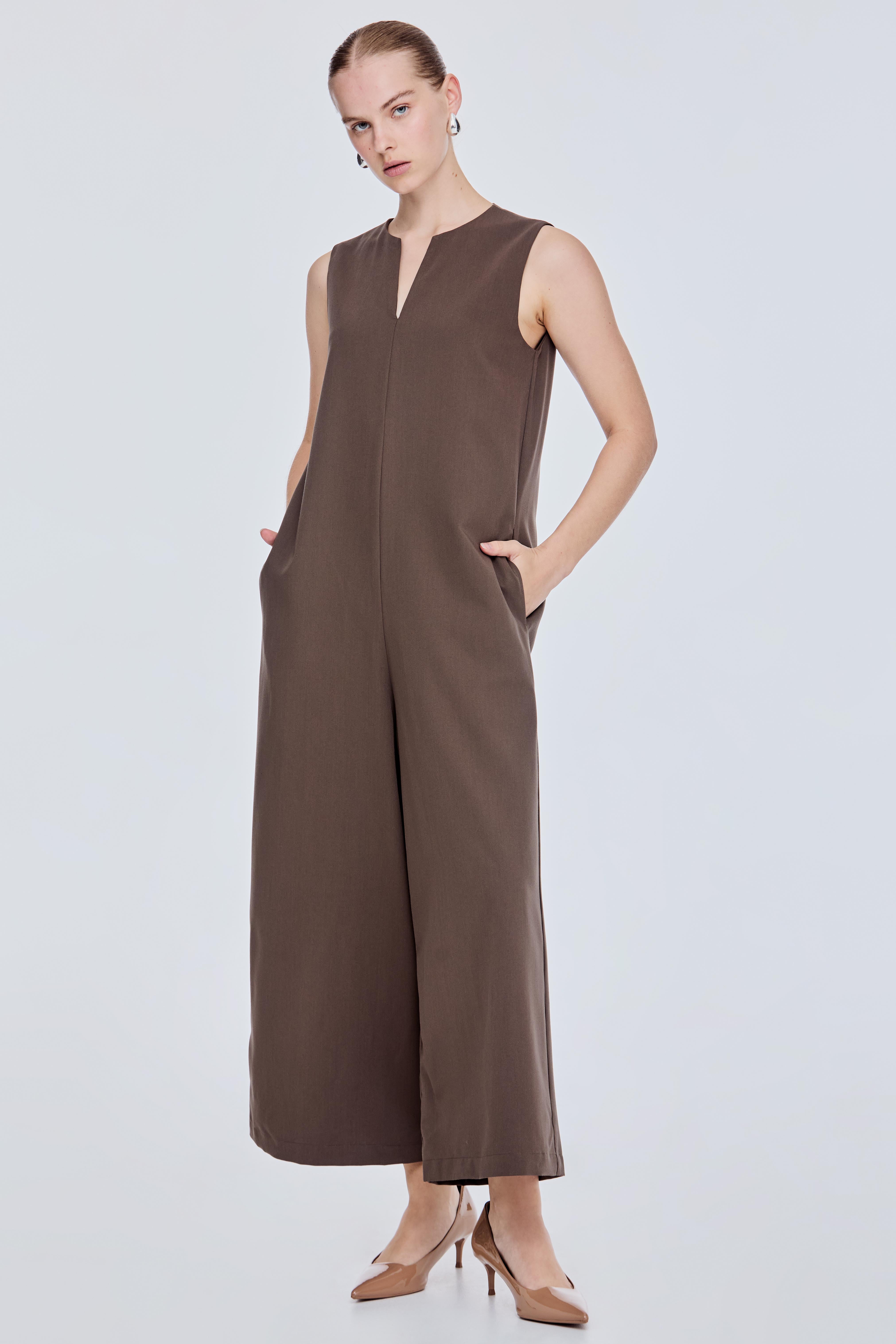 Notched Wide Leg Jumpsuit