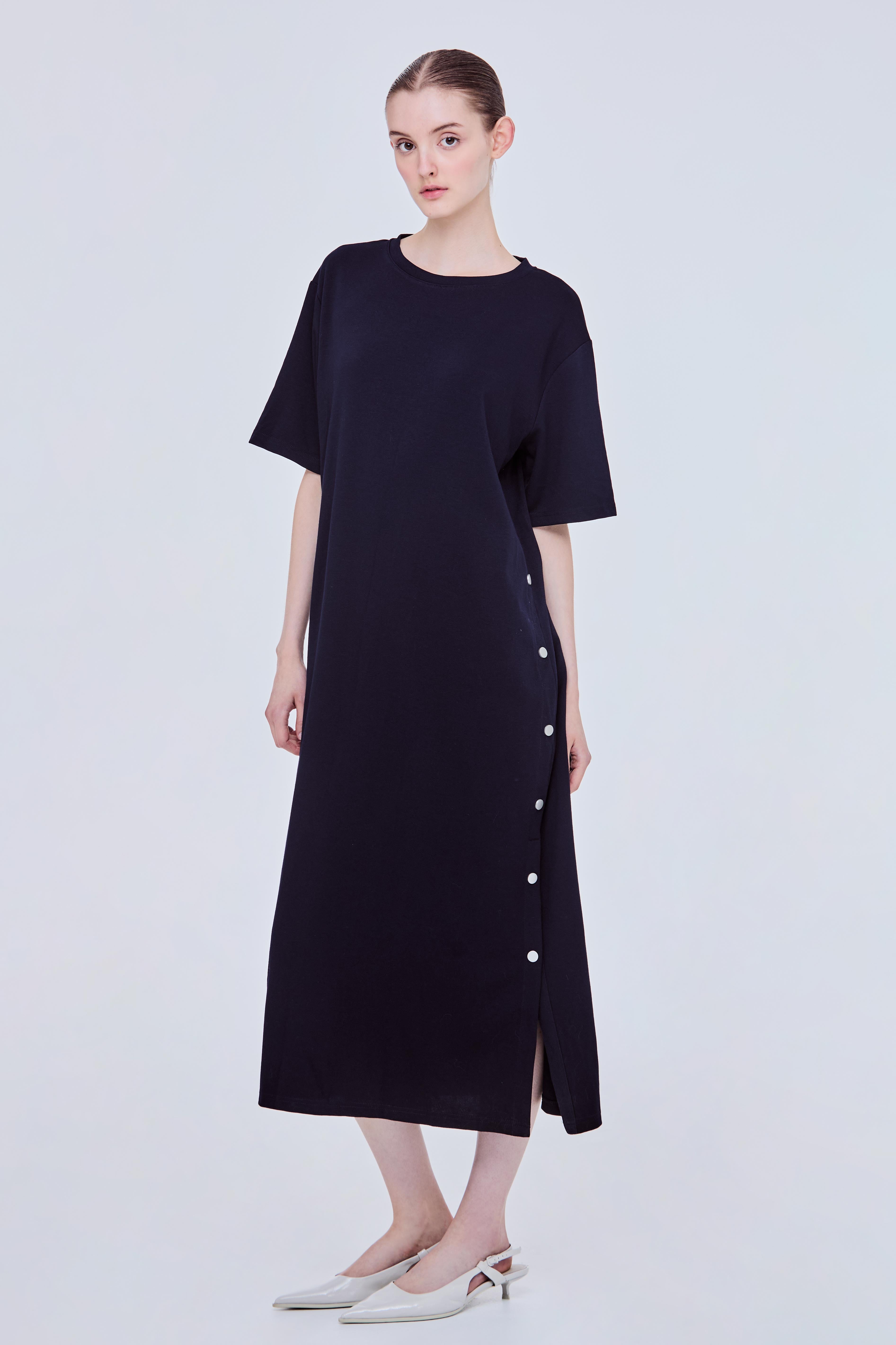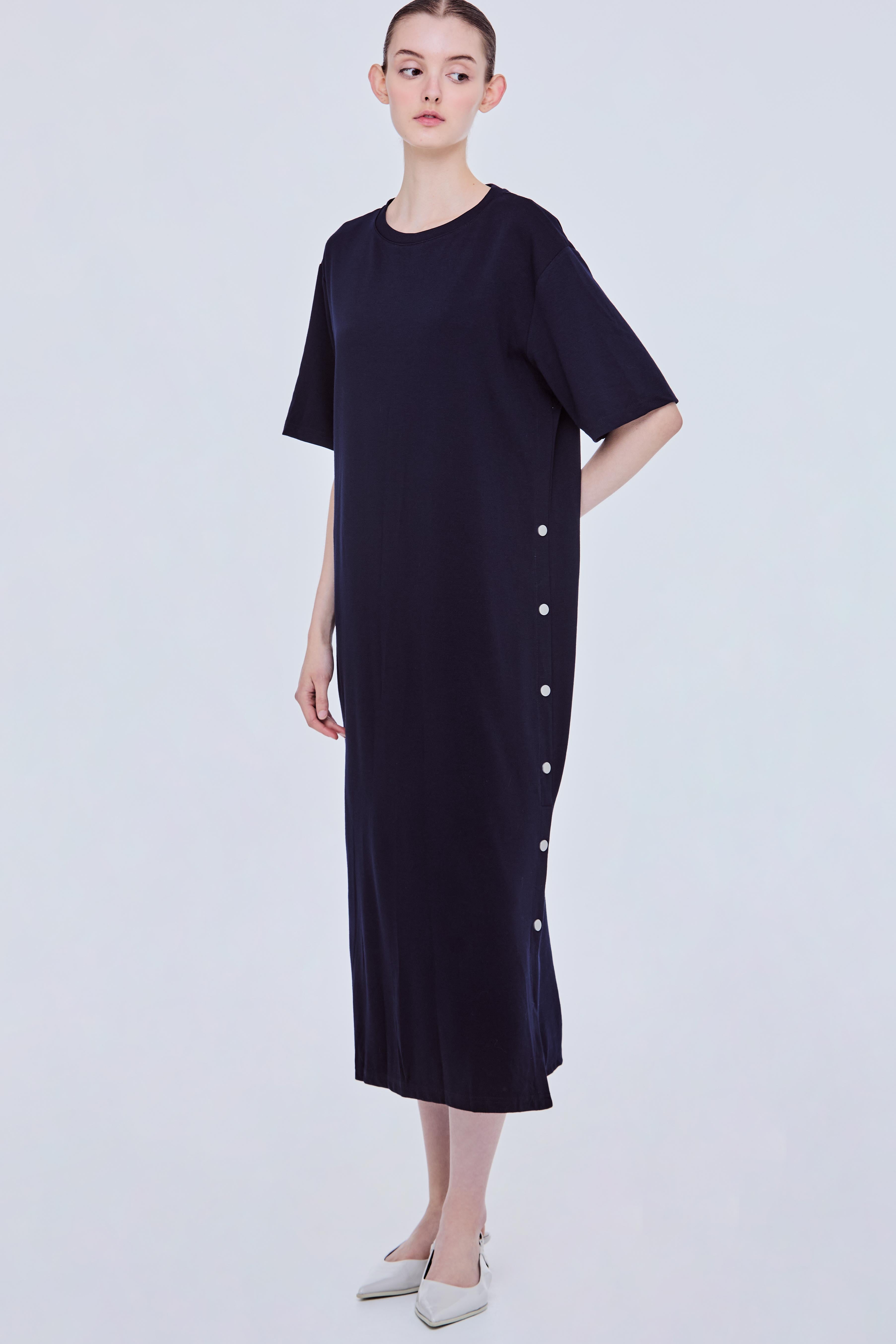 Buttoned Boxy Shift Dress